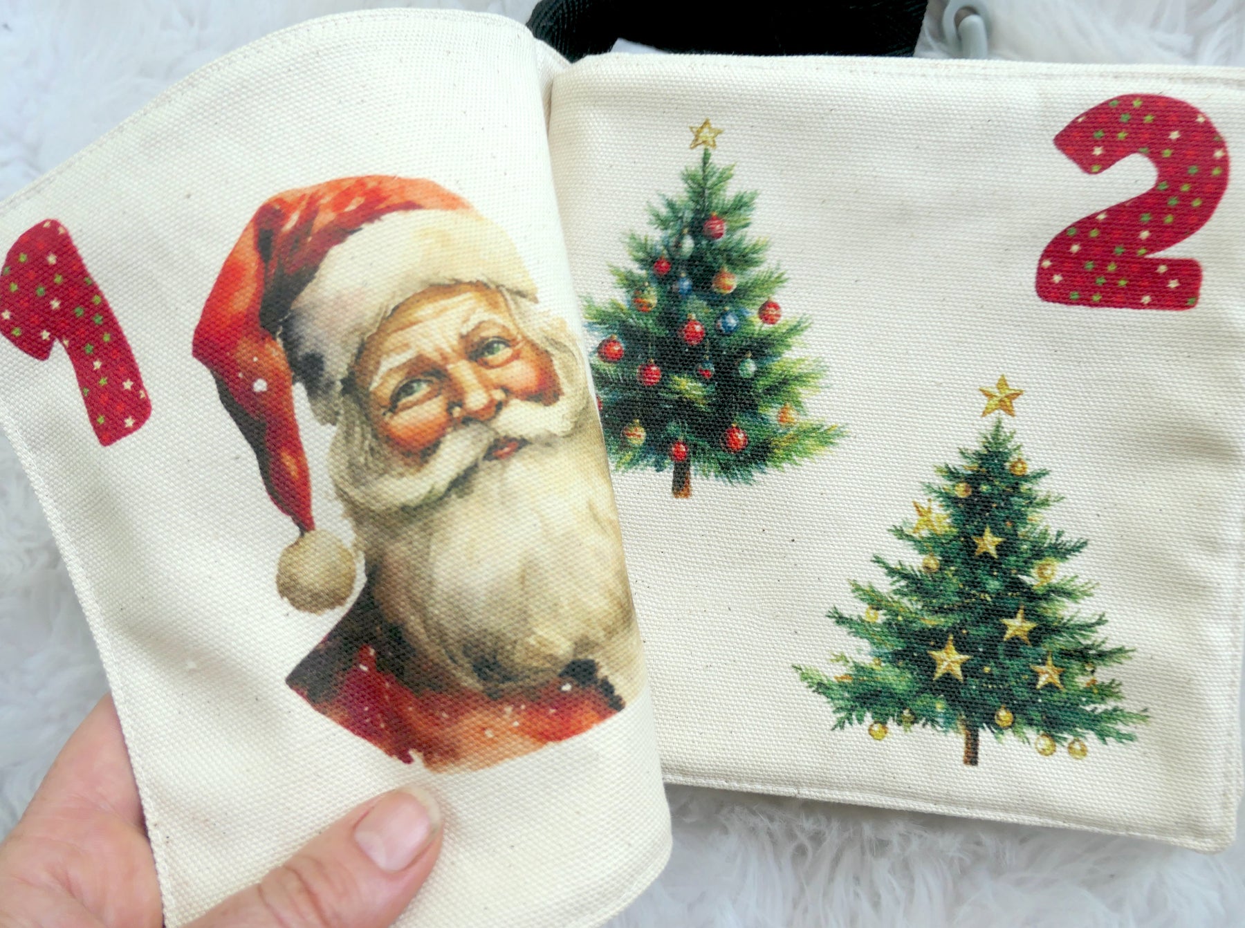 100% Organic Gorgeous fabric Christmas Counting quiet book – a perfect first book and Christmas gift for baby.